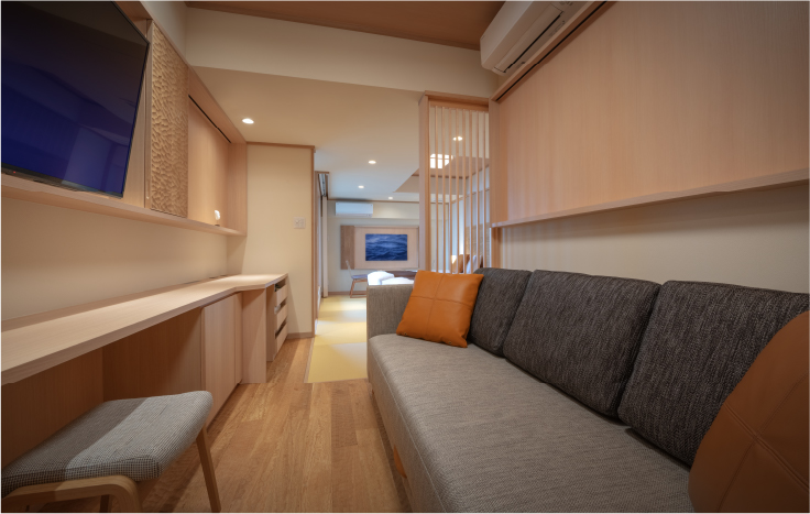 和室12帖 / 海を臨む小窓付きの書院 / 展望温泉 / エアウィーヴ / 洗面台 / 温水洗浄便座付トイレ / 空気洗浄機 / ドライヤー / インターネット接続可能